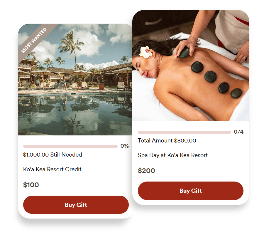 Whether you’re planning an in-person event or celebrating a special occasion with a travel experience, give loved ones the option to pay for part or all of a gift. Redeem registry funds with unique payment preferences.